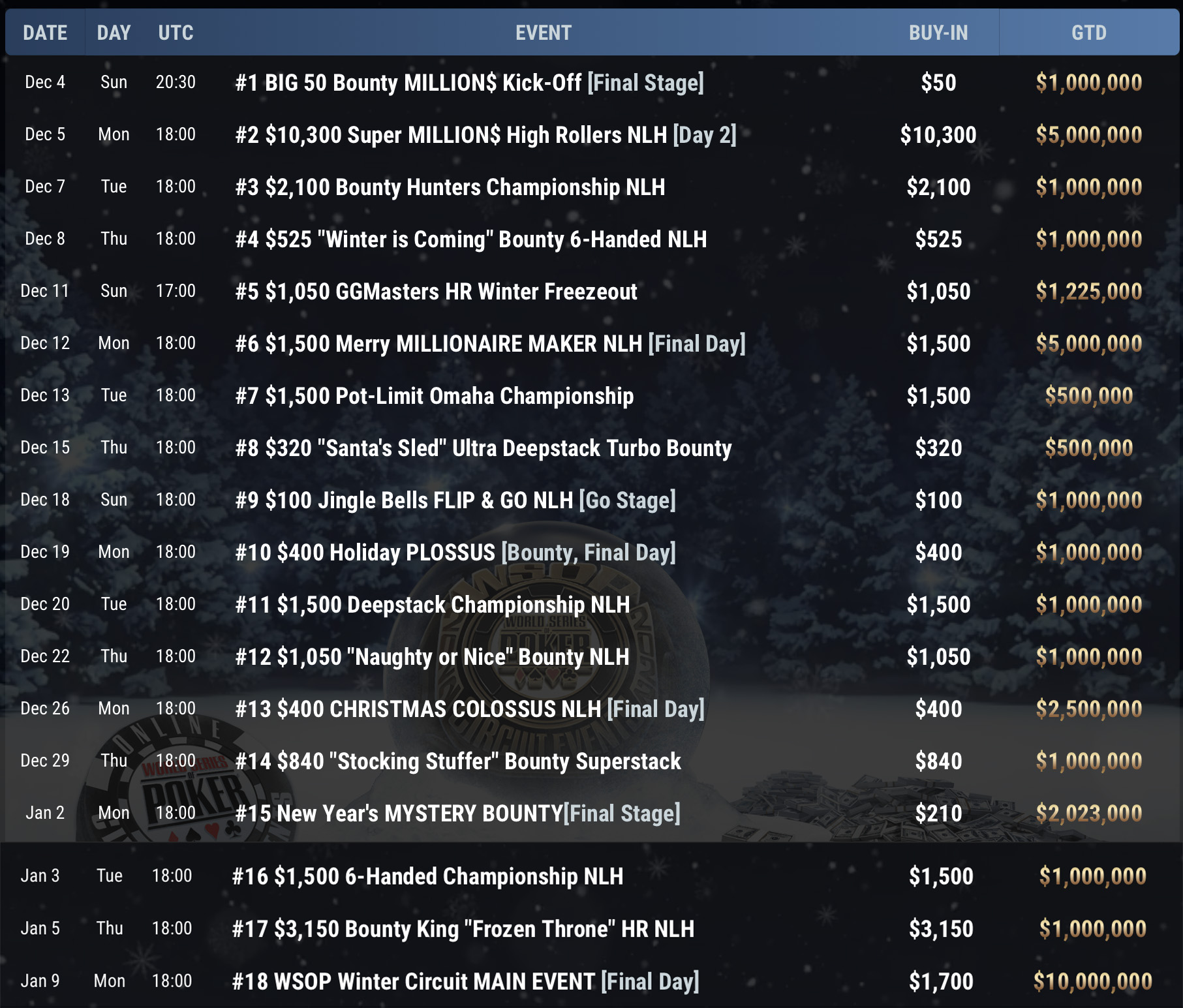 WSOPC Winter 2022: гарантия выше, событий столько же