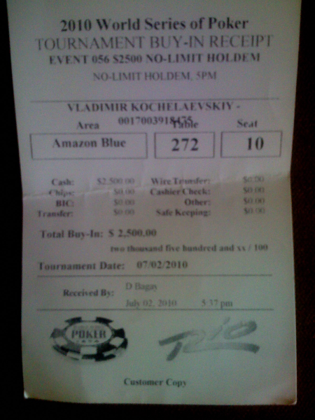 Как правило, в турниры WSOP я регистрируюсь заранее. Во-первых, не надо с утра тратить время на регистрацию. Во-вторых, если приходишь поздно, то выше вероятность попасть за стол с сильными игроками (когда заканчиваются свободные места, организаторы открывают новый стол и сажают за него 9 человек из очереди, любители сильно не опаздывают на турнир, те с высокой вероятностью вашими оппонентами будут профессионалы). В это раз я решил что времени будет достаточно и регистрироваться заранее не стоит.