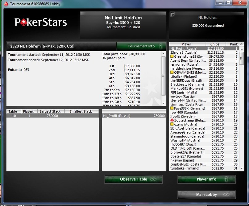 До сих пор, как наяву, репушу КК и получаю кол в холодную от АК червей ВушуТМ и флоп с фл дро.. Надо сказать, что растроился я гораздо меньше, чем Миша у которого была основная доля на этот турнир. Ну да ладно! Знаю, что все еще впереди!