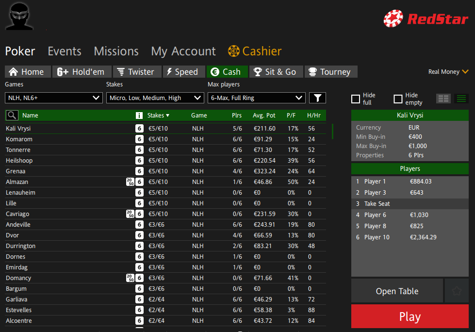 - Анонимное лобби, в котором узнать никнеймы и стеки игроков можно после простановки большого блайнда, можно на Покердоме, PokerKing и RedStar Poker.