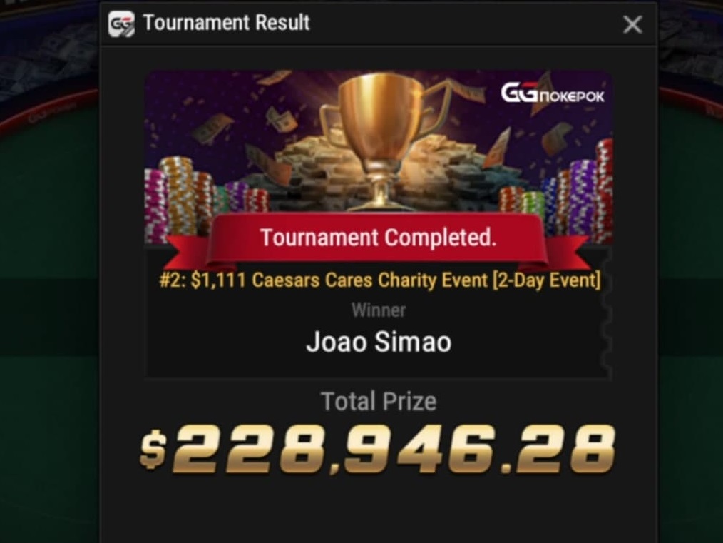 Жоао перешёл во второй день $1,111 Caesars Cares Charity Event WSOP Online 2021 чиплидером и оставался им до предфиналки, постепенно сокращая число разыгрываемых рук. В итоге на финалку он вышел уже со средним стеком и максимально затайтился на более чем час.